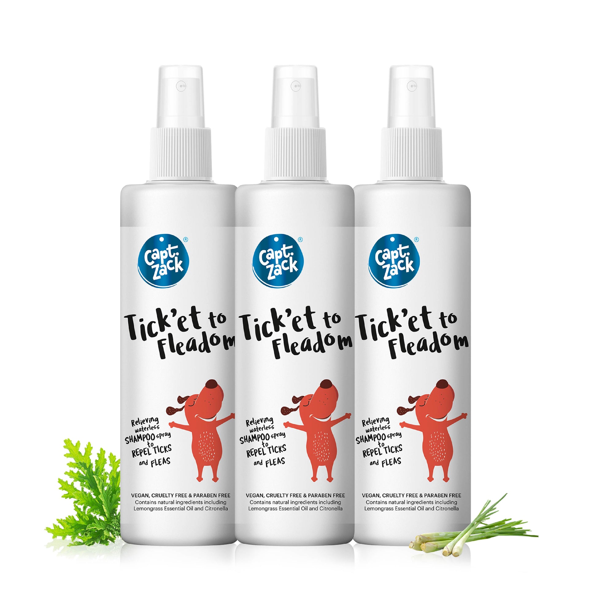 Captain Zack Tick’et to Fleadom is made with some of nature’s finest ingredients such as Lemongrass and Citronella essential oil for your peace of mind and a happy pet. This waterless shampoo offers a stress and mess-free way to keep your pet clean, repel ticks and maintain healthy skin.