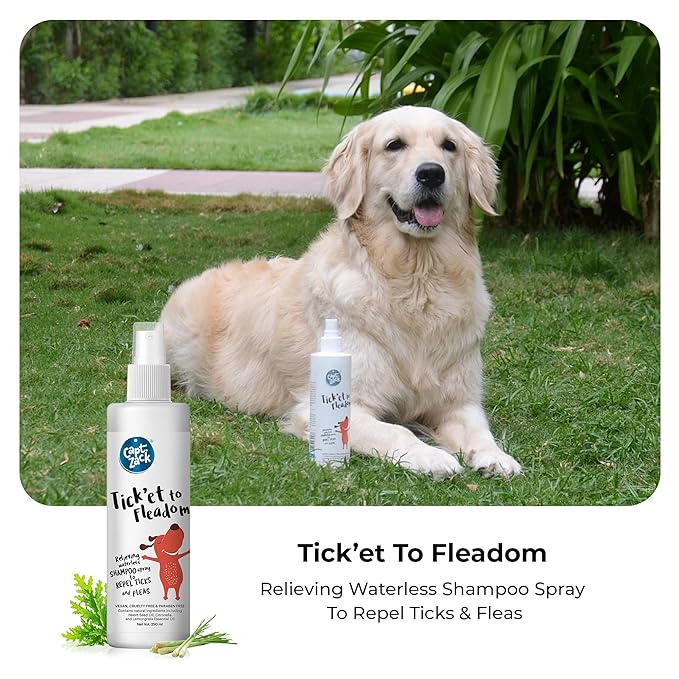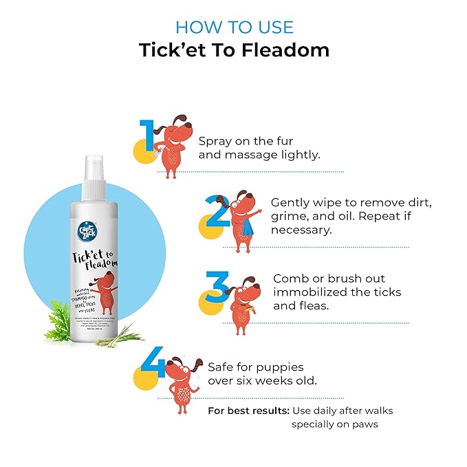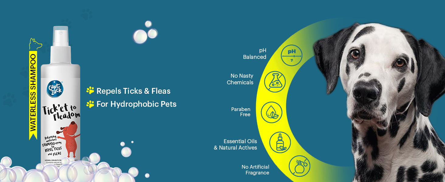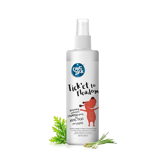 Captain Zack Tick’et to Fleadom is made with some of nature’s finest ingredients such as Lemongrass and Citronella essential oil for your peace of mind and a happy pet. This waterless shampoo offers a stress and mess-free way to keep your pet clean, repel ticks and maintain healthy skin.